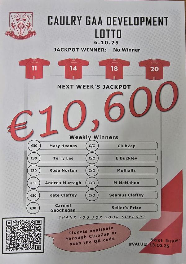 Club LottoCongratulations to Sean Egan who was the luc...